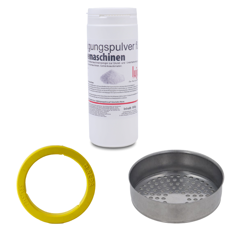 Unsere Reinigungspulver, Entkalker und Dichtungen sorgen für saubere Brühgruppen, kalkfreie Leitungen und konstanten Espresso-Geschmack.
