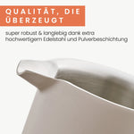 Κατασκευασμένη από ανοξείδωτο ατσάλι υψηλότερης ποιότητας (304), είναι 100 % χωρίς πλαστικό, αντισκωριακή και ιδιαίτερα ανθεκτική – ιδανική για συνειδητούς λάτρεις του καφέ.