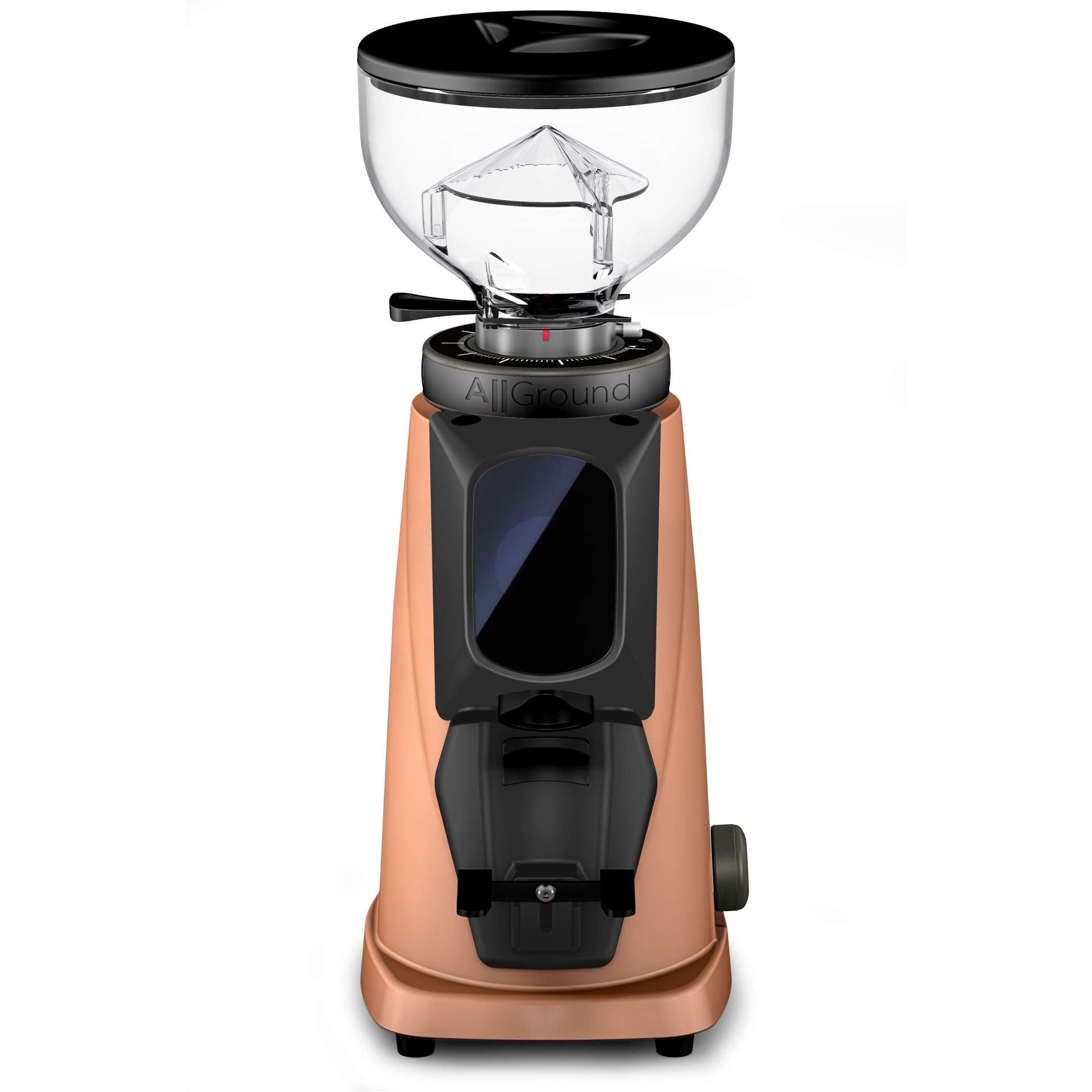 The Fiorenzato AllGround Sense GBW in copper combines modern technology with an exceptionally elegant design. Equipped with 64 mm flat grinding discs and a special Red-Speed coating, it ensures precise, uniform grinding and a clear, aromatic taste result. Thanks to the stepless grind adjustment, the grind size can be precisely matched to the desired brewing style.