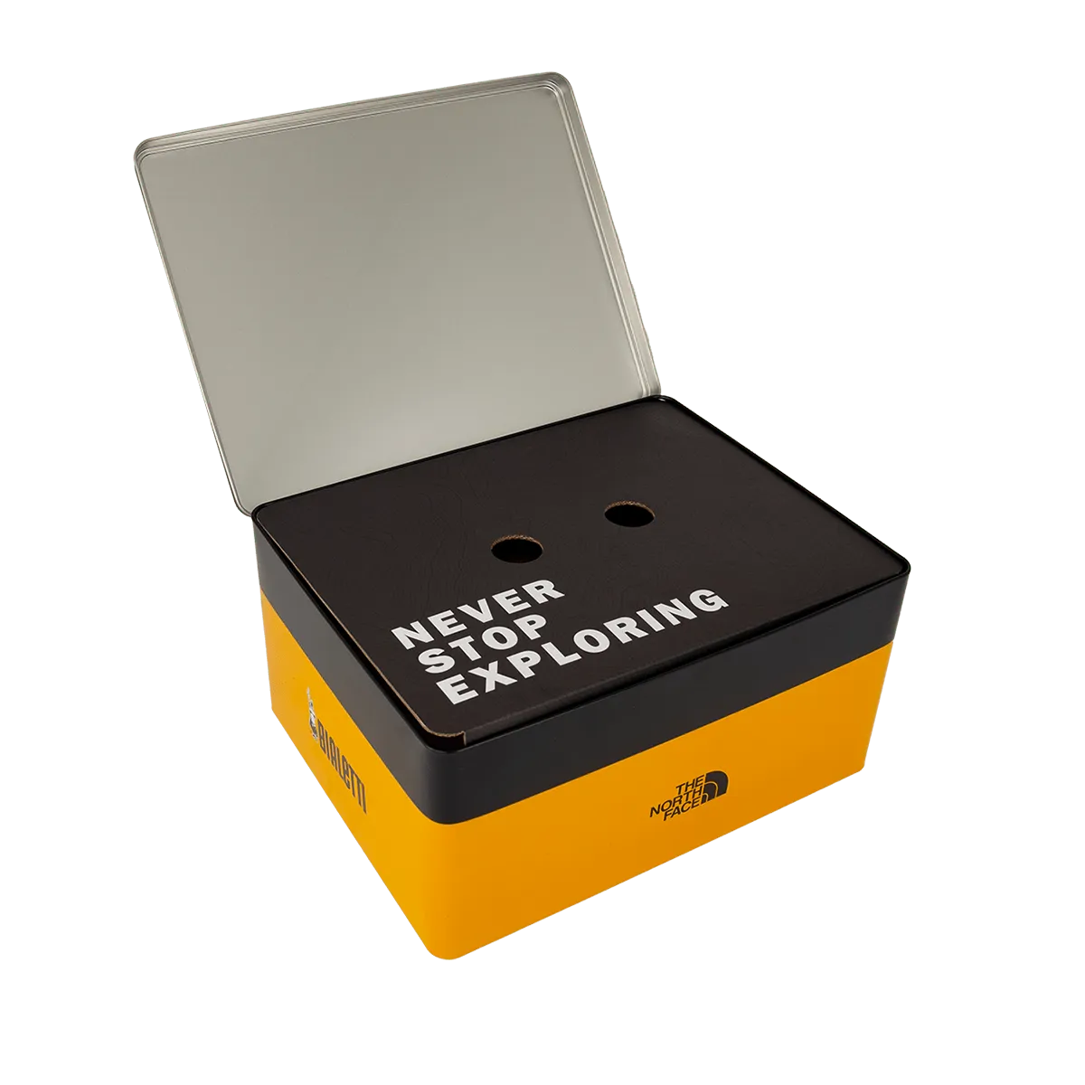 Con il Bialetti x The North Face Moka Set ottieni l'equipaggiamento perfetto per le tue avventure – che si tratti di escursioni in montagna, campeggio o viaggi in città. The North Face rappresenta spedizioni e scoperte, Bialetti il piacere del caffè italiano. Insieme hanno creato un set di caffè in edizione limitata che unisce design, funzionalità e gusto.