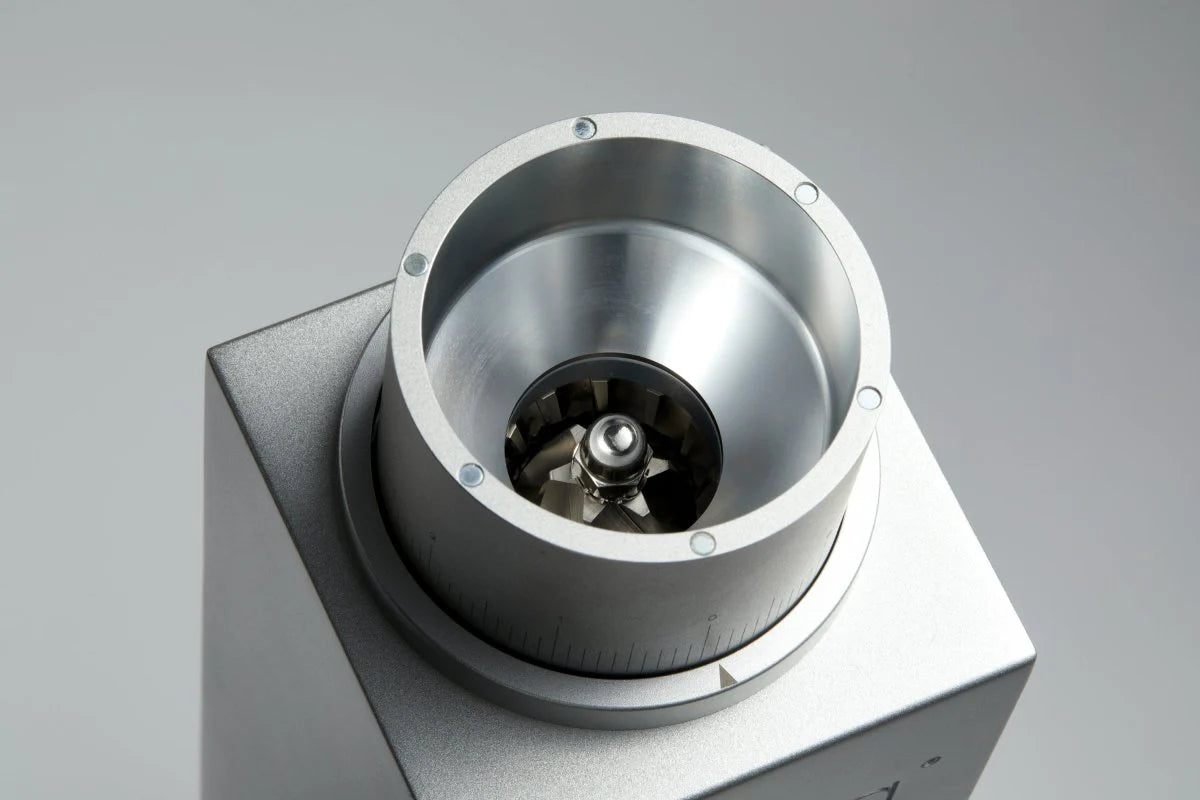 La Varia VS3 si distingue per un bordo esterno monopezzo in acciaio inossidabile, che garantisce una distribuzione uniforme delle particelle e consente una pulizia manuale senza sforzo grazie a ulteriori intagli. Il design antistatico assicura che il caffè venga a contatto solo con il metallo, mentre l'innovativa regolazione continua attraverso l'imbuto da 30 g offre il pieno controllo sulla macinatura.
