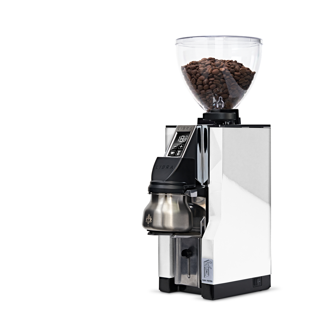 De robuuste afwerking en de elegante witte afwerking maken de Eureka Libra 65 niet alleen tot een krachtige, maar ook tot een visueel aantrekkelijke molen. De nieuwe, duurzame bonencontainer van Tritan® benadrukt het doordachte ontwerp.