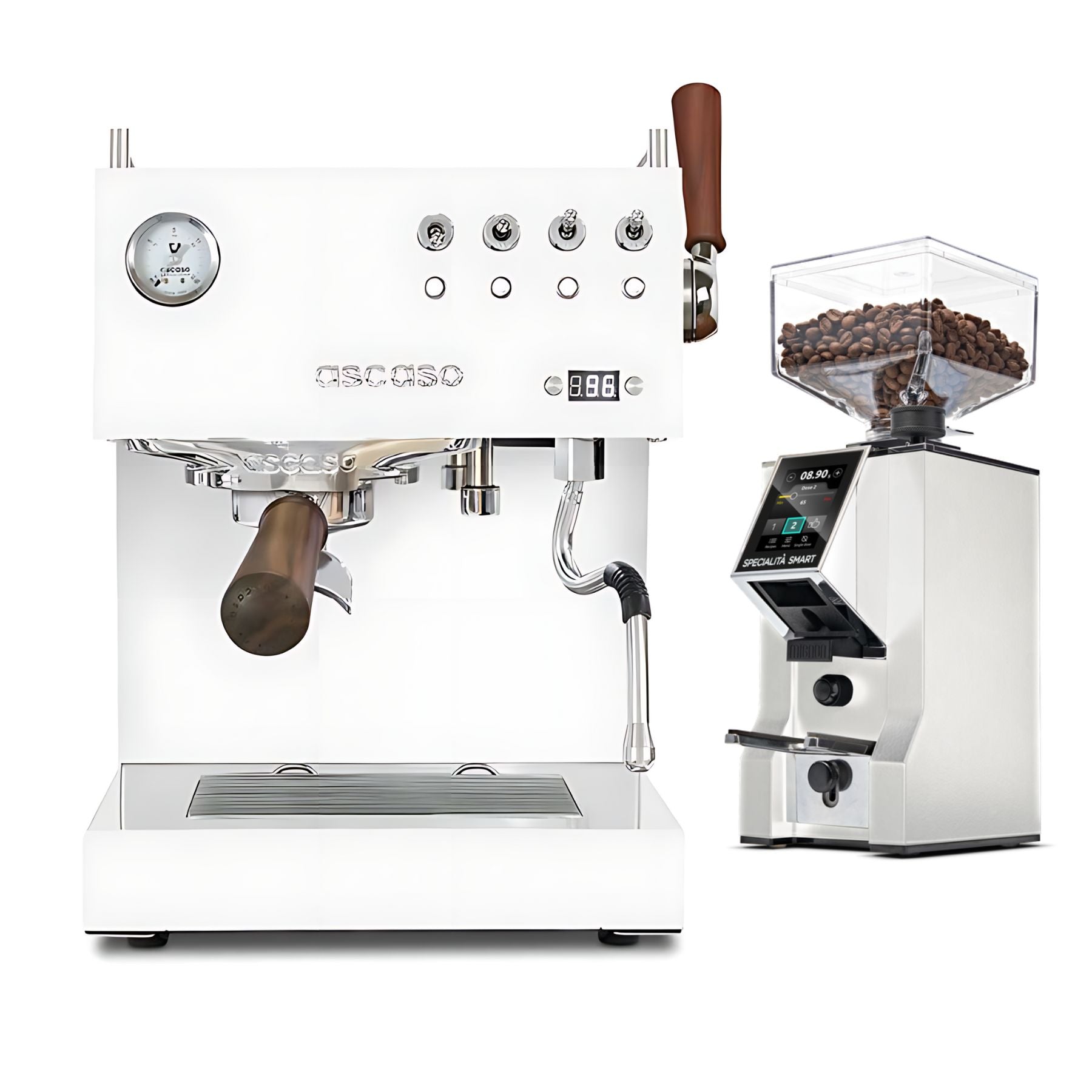 Das perfekte Barista-Set für Designliebhaber: die elegante Ascaso Steel DUO Plus Weiß kombiniert mit der neuesten Eureka Mignon Specialità Smart. Dieses Bundle überzeugt durch modernste Technik, hochwertige Materialien und stilvolles Auftreten – ideal für anspruchsvolle Home-Baristas.
