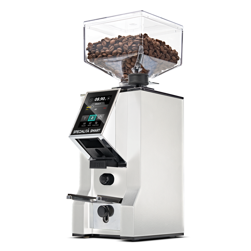 Die Eureka Mignon Specialità Smart ergänzt die Ascaso perfekt: leises, präzises Mahlen dank SMART Technology und Burrs Distance Detection System – ideal für Espresso, Filterkaffee, Mokka & French Press.